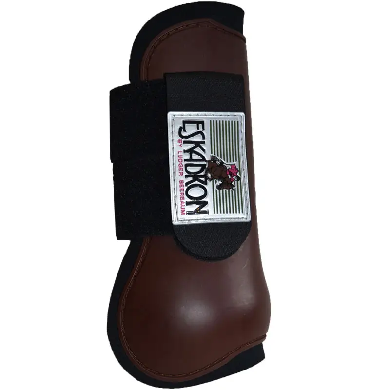 Sterke peesbeschermers van het merk Eskadron met neopreen voering. Door de anatomisch aangepaste harde schaal passen de peesbeschemers perfect om het paardenbeen. De peesbeschermer zijn uitgevoerd met dubbele klittenband voorzien van overslag.