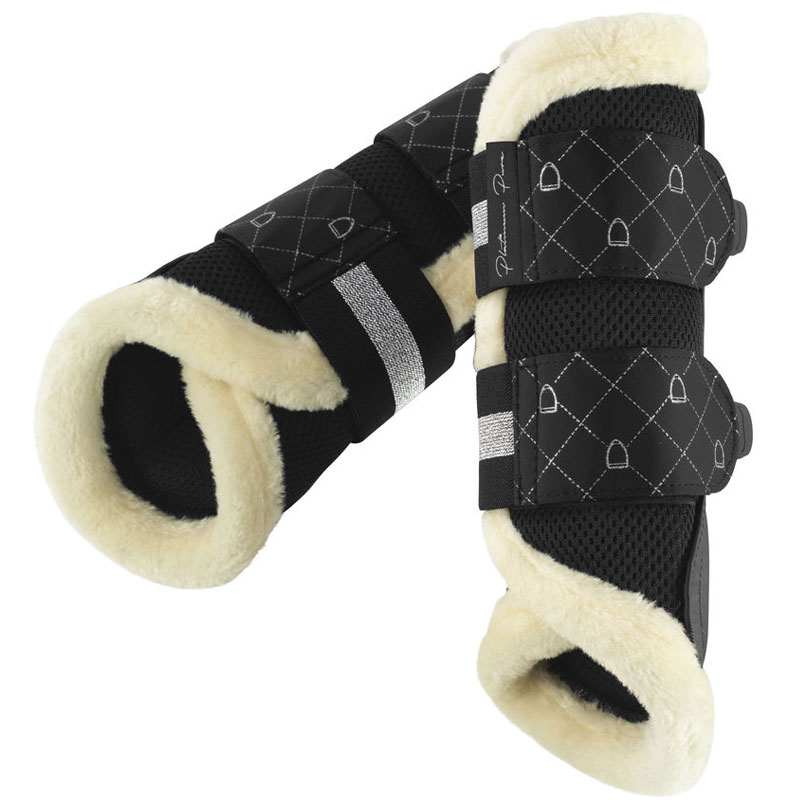 Zachte imitatie lamsvel gevoerde peesbeschermers vervaardigd uit een combinatie met ademend en sterk mesh materiaal aan de buitenzijde uit de Eskadron Platinum Pure collectie. Het lamsvel in combinatie met de ademende mesh buitenzijde zorgt voor optimale demping en bescherming van de pezen.