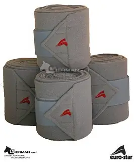 Luxe fleece bandages van het merk Euro-Star. Verpakt per 4 stuks in draagtas. Bandages hebben een lengte van ongeveer 3 meter.