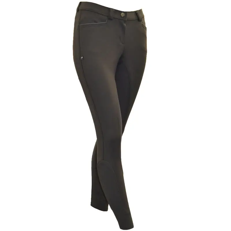 Hoogwaardige kwaliteit dames rijbroek van het merk Euro-Star model Carina. De rijbroek is voorzien van zakken aan de voorzijde, full grip zitvlak en elastisch gedeelte aan de onderzijde bij de enkels.