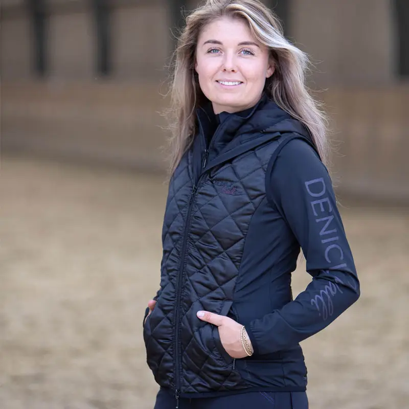 De Harry’s Horse Bodywarmer DC Amethyst is een doorgestikte dames bodywarmer, licht gewatteerd, waardoor deze uiterst geschikt is voor de zomer periode. De bodywarmer is vervaardigd uit een glanzend materiaal en is voorzien van een tweeweg ritssluiting, zakken met ritssluitingen en paars gekleurd Denici Cavalli logo op de borst.