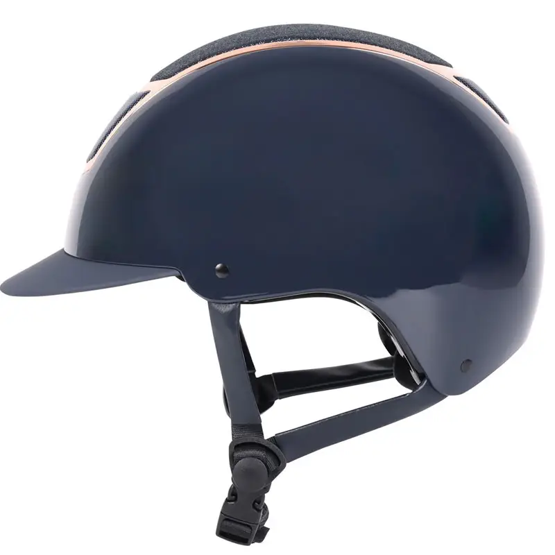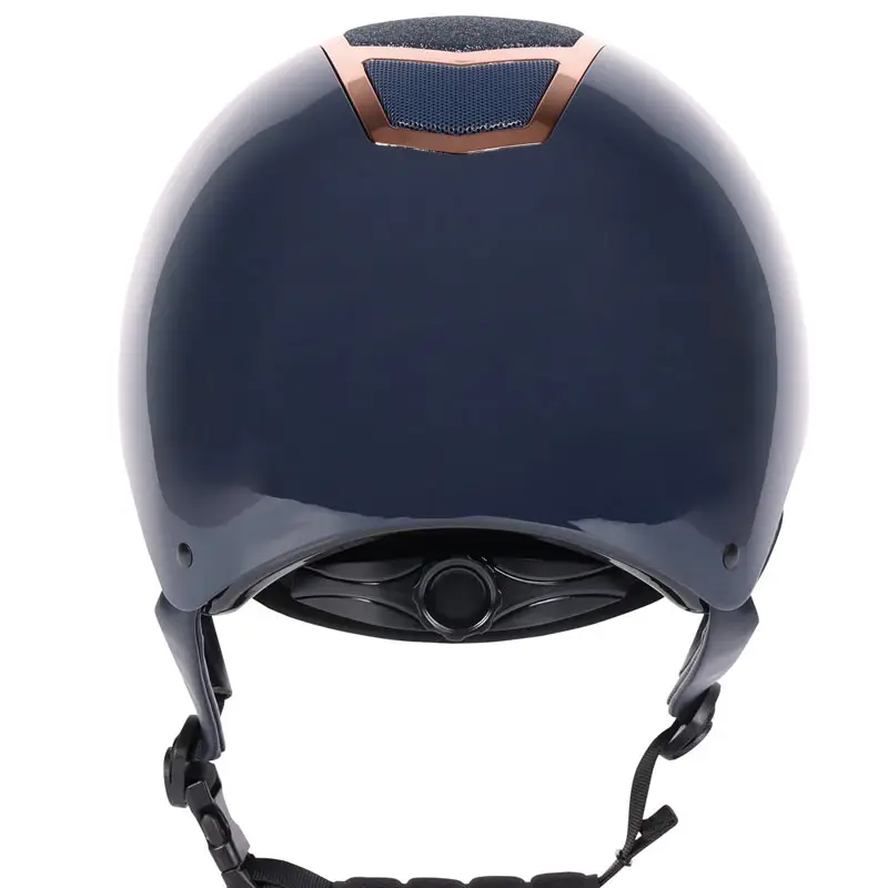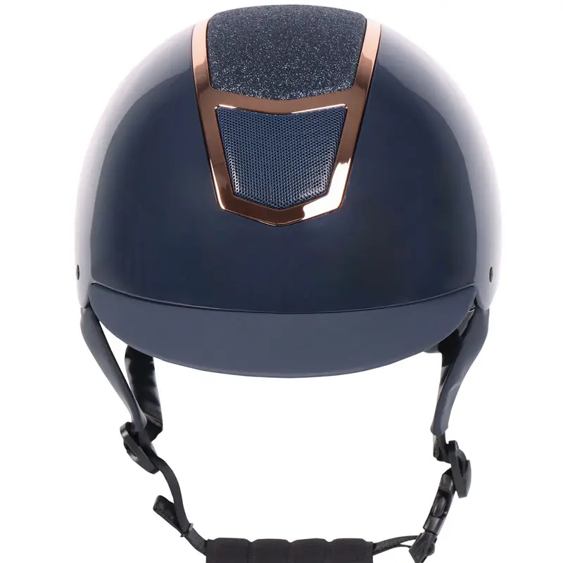 De Harry’s Horse cap Matterhorn Sparkle VG1 Navy/Rosegoud is verstelbaar in maat door middel van een draaiknop aan de achterzijde. Deze cap heeft een uitneembare en wasbare voering en is voorzien van ventilatie rooster aan de voor en achterzijde. De cap voldoet aan de CE EN 1384:2023 veiligheidsnormering en is afgewerkt in een glanzend gespoten schaal in combinatie met glitter en zilverkleurige rand in het midden.