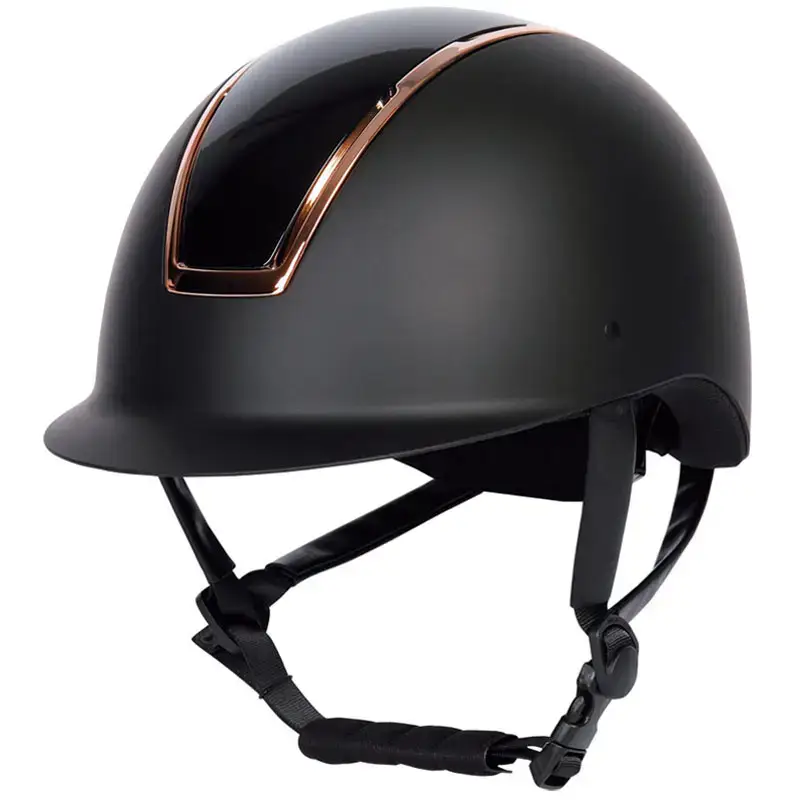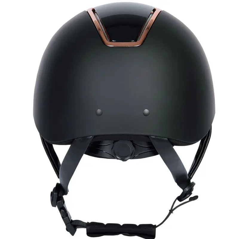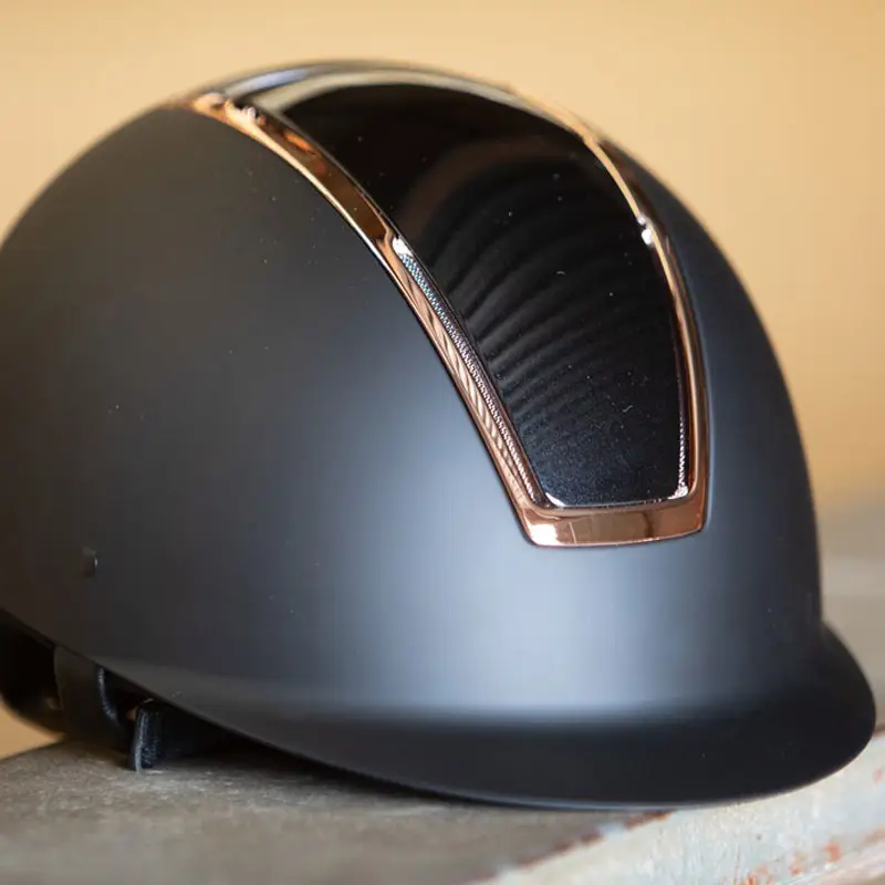 Luxe mat zwarte cap van het merk Harry’s Horse afgewerkt met een Glossy finish in het midden met rosegoud detail. De cap heeft een uitneembare en wasbare voering en voldoet aan de CE VG1 01.040 2014-12 veiligheidsnormering.