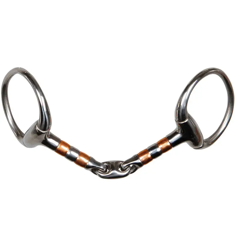 Dubbel gebroken bustrens vervaardigd uit roestvrijstaal voorzien van rvs en koperen rollers, zodat het bit minder gemakkelijk vast gepakt kan worden en wat tevens er voor zorgt dat de speekselvorming wordt gestimuleert.