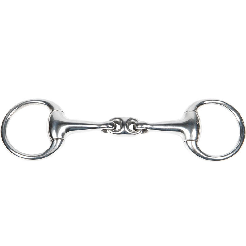 Dubbel gebroken watertrens van het merk Harry’s Horse vervaardigd uit roestvrijstaal. Het bit heeft een mondstuk van 12 mm dik en een ringdoorsnede van 45 mm. Speciaal geschikt voor kleine pony’s.