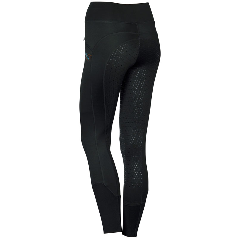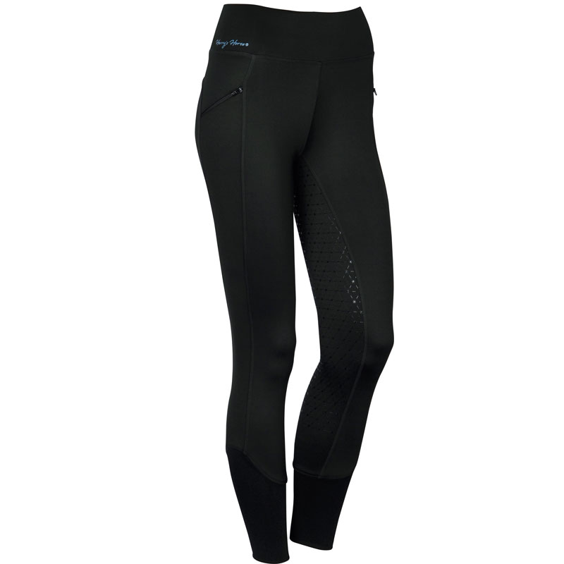 De Harry’s Horse Equitights Ivy Zwart heeft een brede elastische tailleband zonder sluiting en is voorzien van een Full Grip siliconen zivlak. Aan de onderzijde bij de enkels is de rijlegging uitgevoerd met elastisch gedeelte voor een makkelijke instap. Afgewerkt met print op de tailleband en onder de linker zak.