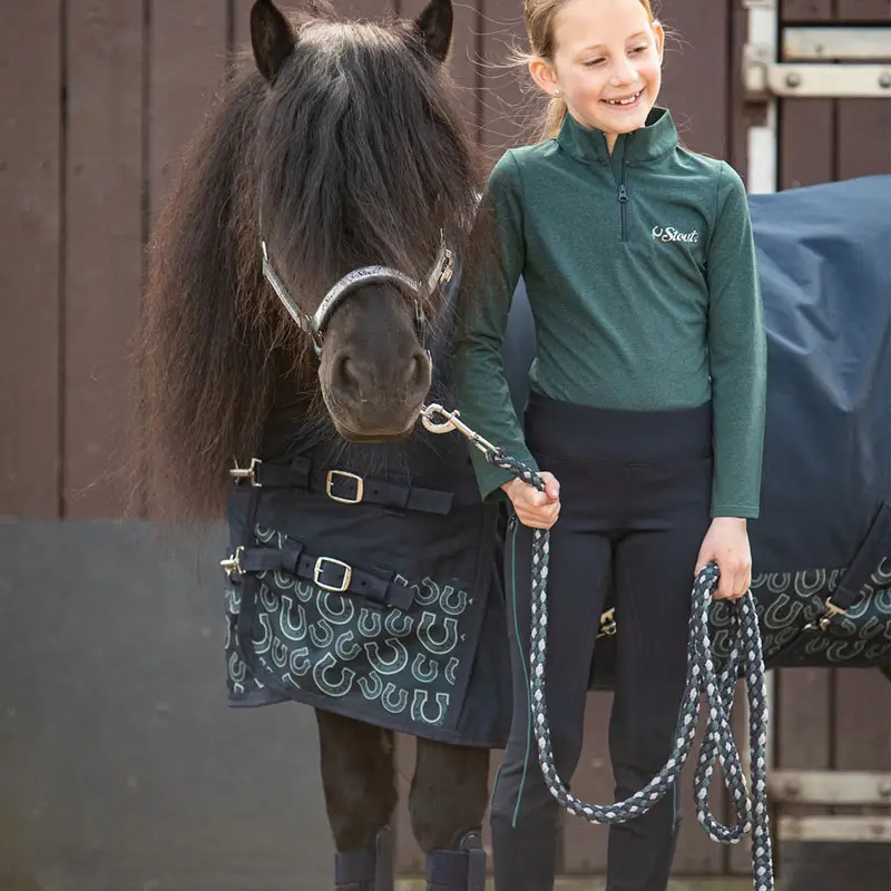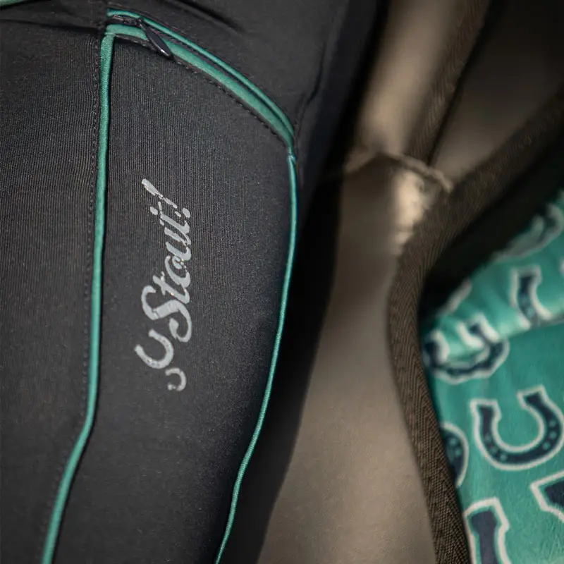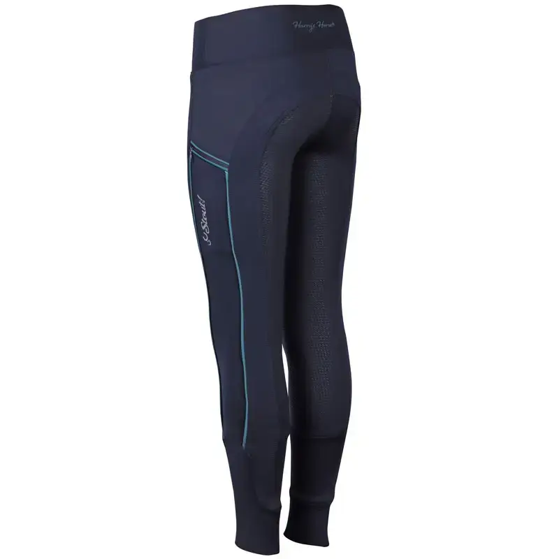 De Harry’s Horse Equitights STOUT Navy is een hippe paardrijlegging voor kinderen gemaakt uit een comfortabele stretch stof. De legging heeft is voorzien van twee schuinen zakken met rits, een Full Grip siliconen zitvlak en elastisch gedeelte bij de enkels. Afgewerkt met STOUT logo op het been en op de achterzijde van de tailleband.