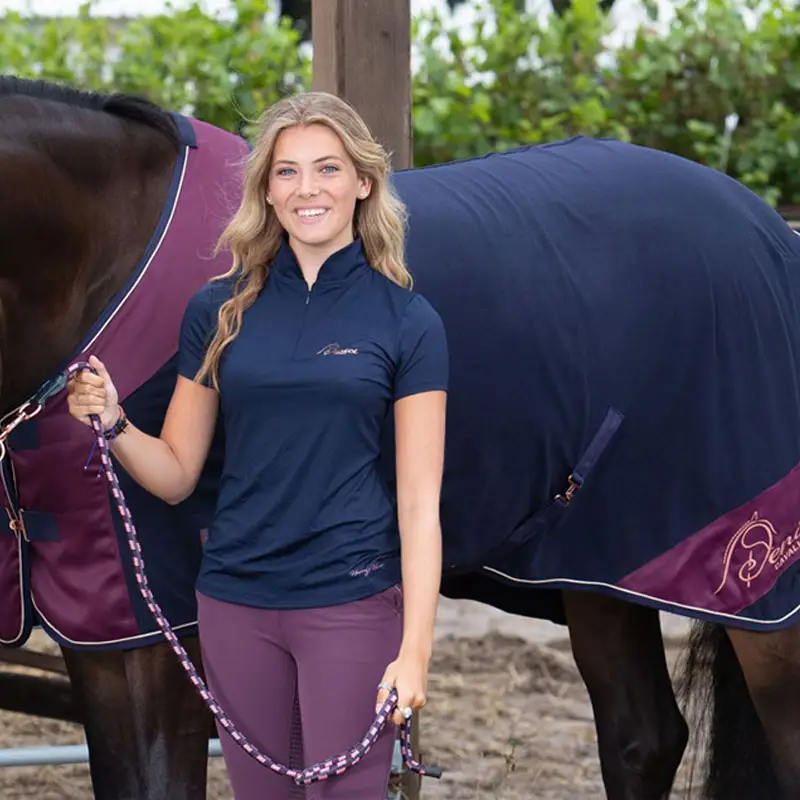 Mooie fleecedeken uit de Harry’s Horse Denici Cavalli Maroon collectie. De deken is voorzien van rosegoud gekleurde gespen aan de voorsluitingen en kruissingels en is afgewerkt met Denici Cavalli logo aan de achterzijde.