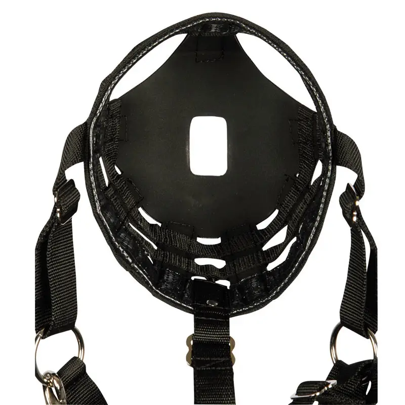 Graasmuilkorf van het merk Harry’s Horse voorzien van uitsparingen, waardoor er aanzienlijk minder gras gegeten kan worden, maar wel normaal kan worden gedronken en gegeten.