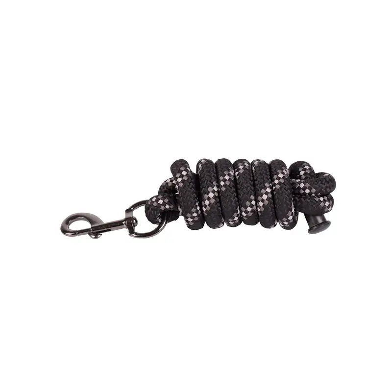 Harry’s Horse Halsterset Denici Cavalli afgewerkt met een glitter piping op de neusriem, kopstuk en op de bakstukken. Het halster is zacht gevoerd en heeft Gunmetal kleurige fournituren. Wordt geleverd inclusief bijpassend halstertouw met musketon.