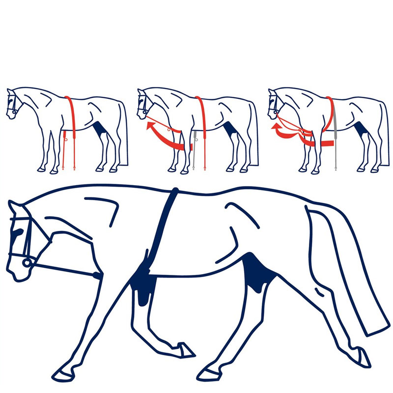 Longeerhulpmiddel van het merk Harry’s Horse vervaardigd uit zacht katoen met sterk polyproyleen. De longeerhulp is zeer geschikt als trainingsmiddel tijdens het longeren. De longeerhulp dient ervoor dat het paard de bovenlijn leert te stretchen en tevens voorzichtig nageeflijk wordt. De longeerhulp is ruim verstelbaar in maat.