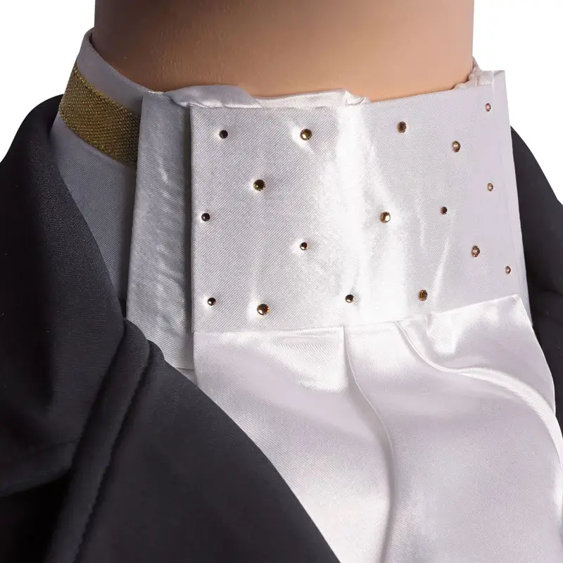 De Harry’s Horse plastron Precious Goud is te bevestigen met klittenbandsluiting aan de achterzijde. De plastron is afgewerkt met goud gekleurde band in combinatie met crystal steentjes.