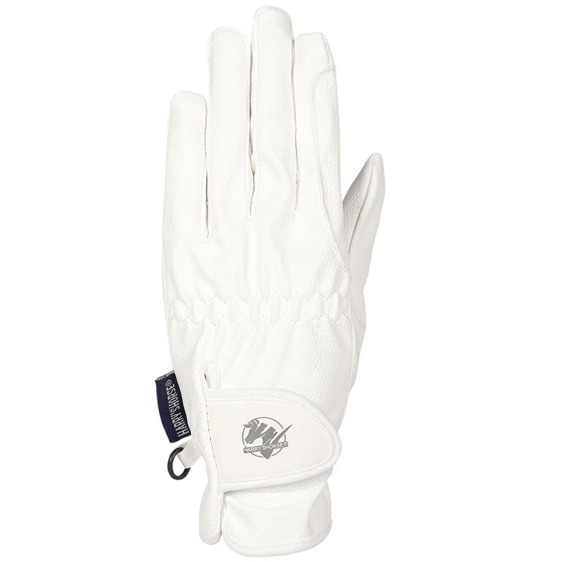 Comfortabele kunstlederen rijhandschoenen van het merk Harry’s Horse voorzien van teugel versteviging en klittenbandsluiting op de pols.