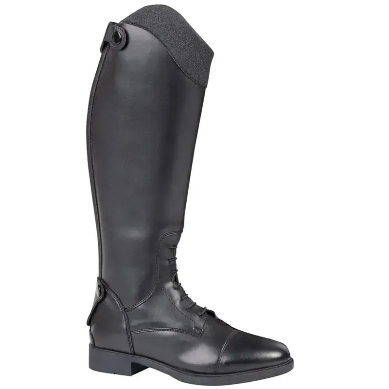 De Harry’s Horse Rijlaars Bellagio Junior zijn luxe synthetische rijlaarzen met een ritssluiting in combinatie met elastisch gedeelte aan de achterzijde en een elastische veter op de wreef. De rijlaarzen zijn afgewerkt met glitter optiek kap aan de bovenzijde.