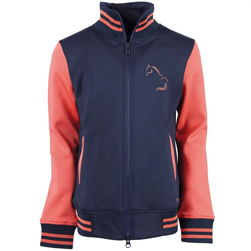 Kinder Harry’s Horse vest LouLou Jibaro in de kleurcombinatie midnight navy met fusion coral. Het vest is voorzien van een tweeweg ritssluiting, zakken met ritssluitingen, contrasterende strepen op de manchetten en op de tailleband en is afgewerkt met LouLou print op de borst en op de achterzijde.
