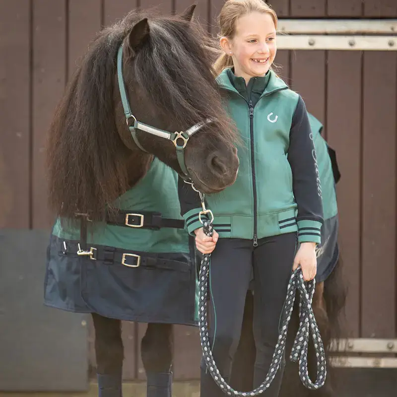Het Harry’s Horse vest STOUT Teal is een stoer twee kleurig kinder vest uit de Harry’s Horse STOUT collectie. Het vest is voorzien van tweeweg ritssluiting, steekzakken en is afgewerkt met grote applicatie op de borst en op de mouw.