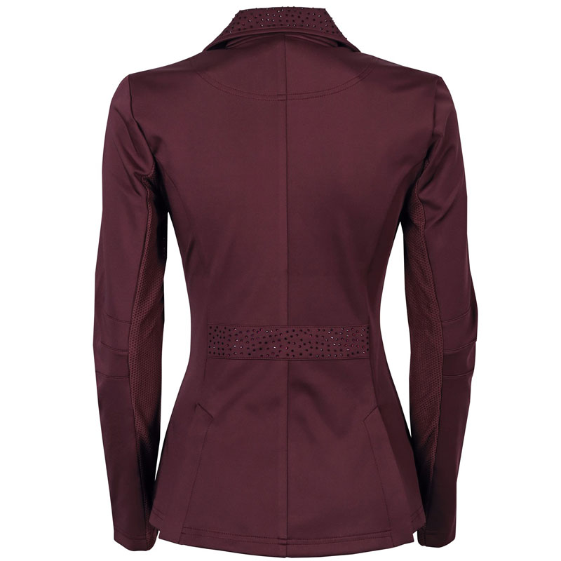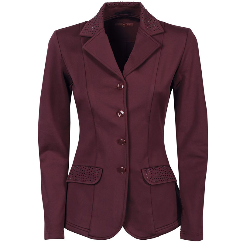 De Harry’s Horse wedstrijdjas Crystal Bordeaux is gemaakt uit mooie kwaliteit stretch stof. Het jasje is uitgevoerd met steekzakken, knoopsluiting en achter de knoopsluiting een ritssluiting voor het creëren van een optimale pasvorm. De kraag, zakjes en de achterzijde in de taille zijn afgewerkt met subtiele crystal steentjes.