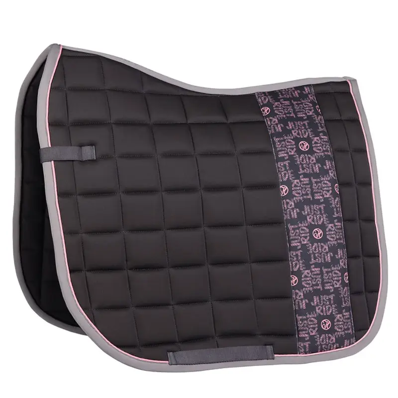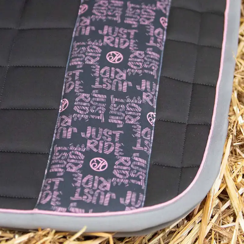 Het Harry’s Horse Zadeldek Just Ride Urban is voorzien van een vochtopnemende voering en is afgewerkt met een contrastrende bies in combinatie met een verticale baan afgewerkt met Just Ride print in roze. Het dekje is anatomisch gevormd en heeft zadellussen met klittenbandsluiting en singellussen.