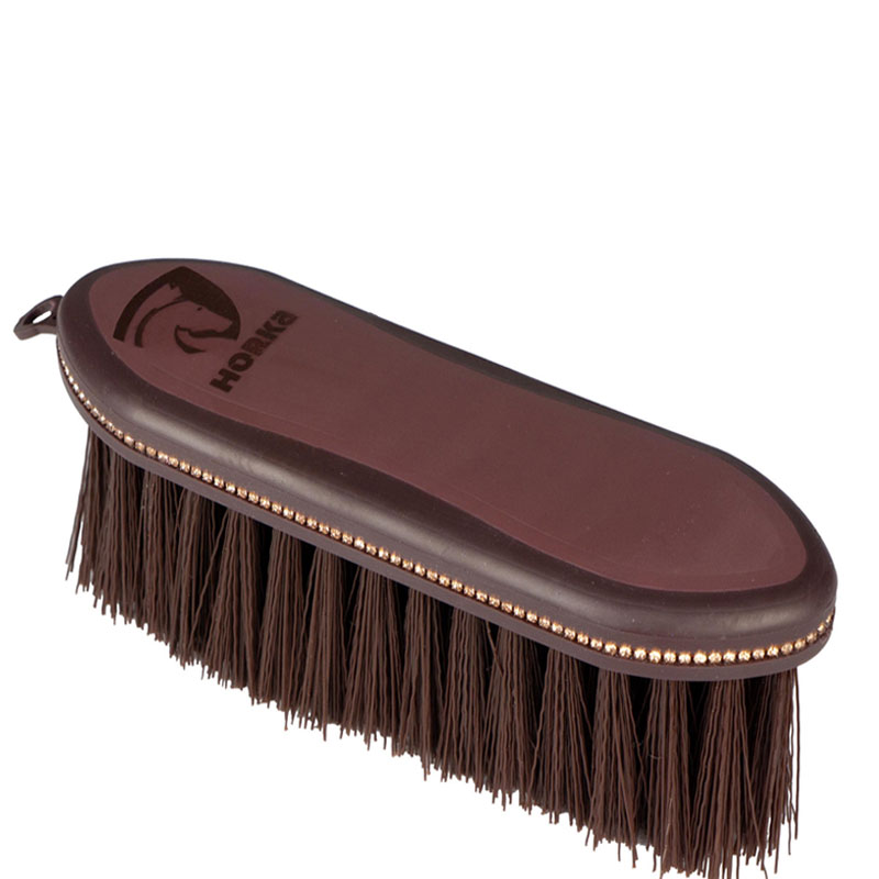 Horka Borstel Diamant Hard Deep Ruby afgewerkt met rosegoude steentjes rondom. Ideaal voor het verwijderen van grof vuil of modder uit de vacht van het paard.