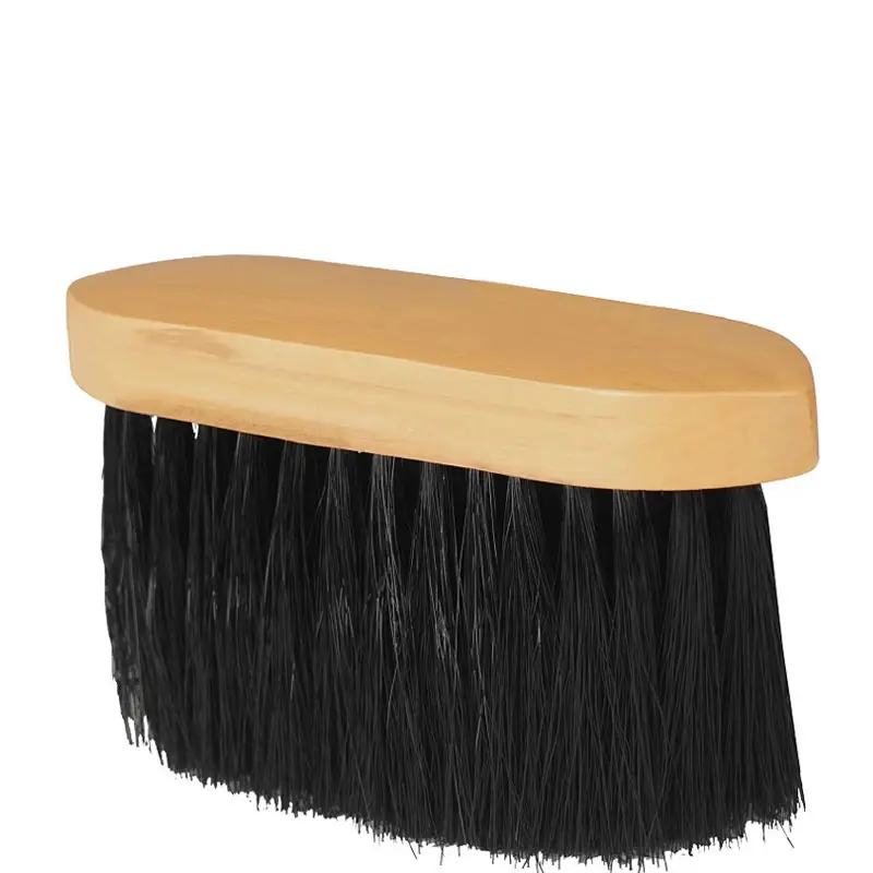 Horka Borstel Hout Lang Zacht Zwart. Een stevige borstel met lange, zachte nylon haren en houten rug. Ideaal voor het verwijderen van stof en los vuil uit de vacht van het paard.