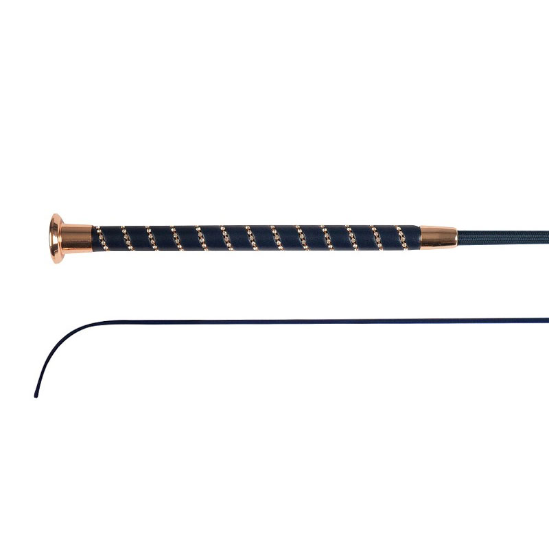 De Horka dressuurzweep Diamant blauw/rosegoud is een chique zweep afgewerkt met diamantjes verwerkt in het handvat. De zweep is met nylon omwonden en is verkrijgbaar in verschillende lengtes.