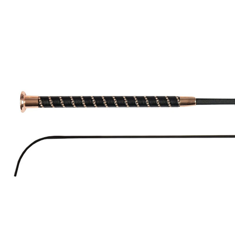 De Horka dressuurzweep Diamant zwart/rosegoud is een chique zweep afgewerkt met diamantjes verwerkt in het handvat. De zweep is met nylon omwonden en is verkrijgbaar in verschillende lengtes.