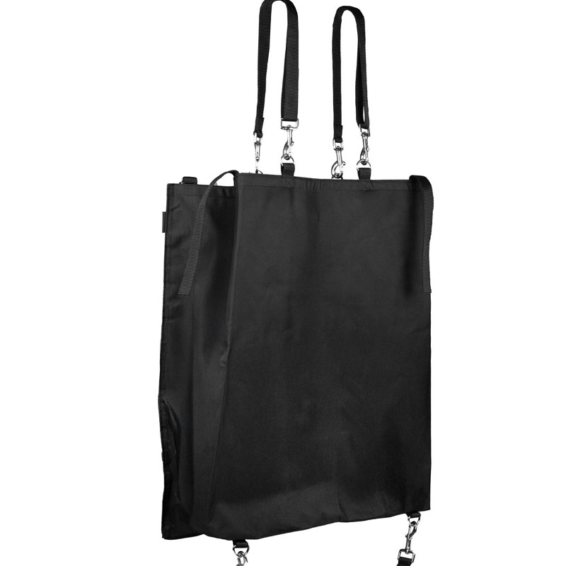 Deze hooizak (slowfeeder) is gemaakt uit sterk materiaal en is dankzij de grote opening aan de bovenzijde zeer gemakkelijk en snel te vullen. Voorzien van meerdere verstelbare lussen met musketons zodat deze gemakkelijk passend te maken is op elke willekeurige plek.