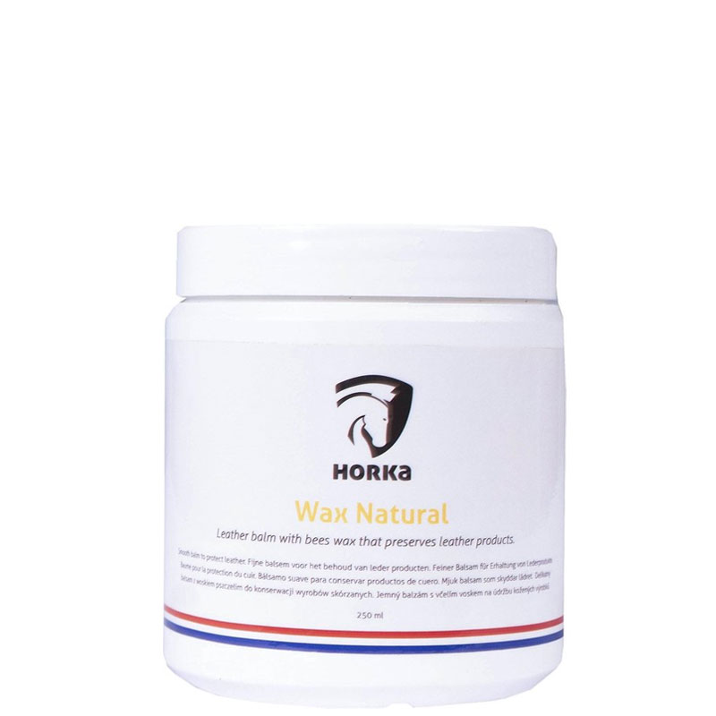 Horka Leather Balm Step 3 250 ml Blank is een 100% natuurlijke wax lederbalsem welke zorg draagt voor een effectieve behandeling van het leer. De balsem creëert een beschermlaag, geeft voeding en maakt het leer waterafstotend. Dit ter voorkoming van aantasting door vocht of schimmels. Naast de verzorging draagt de Horka lederbalsem er ook zorg voor dat het leer soepel en glanzend eruit komt te zien. Verrijkt met vanille extract zodat de balsem ook nog eens lekker ruikt.