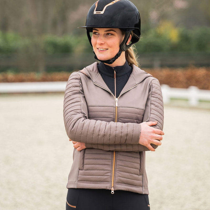 Het Horka Puffer Vest Magnificent coffee/rosegoud is vervaardigd uit hoogwaardig materiaal met roségoude details. Het vest beschikt over twee voorzakken met rits en Equestrian Pro logo tape rondom de capuchon. De combinatie van de twee stoffen zorgen voor een flatterende pasvorm.
