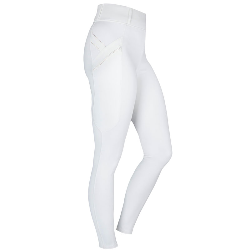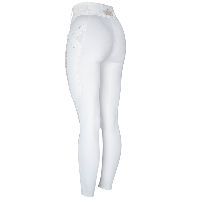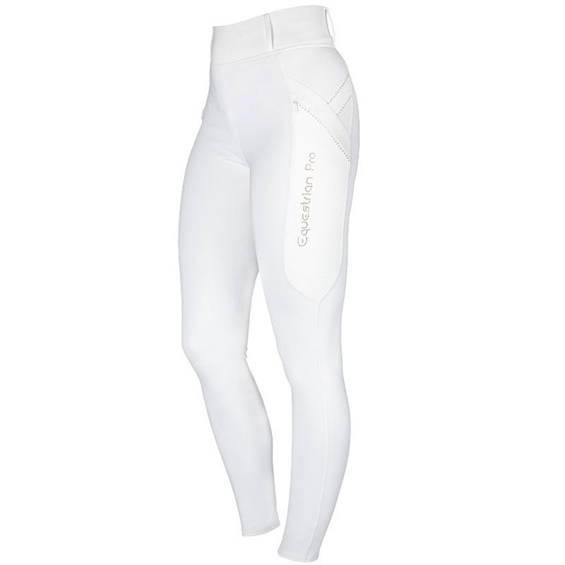 Horka Rijlegging Momentum Full Grip kids wit/rosegoud. Een opvolger van de welbekende Horka rijlegging Jubilee. De Horka rijlegging Momentum is een sportieve rijlegging met een Grip zitvlak en voorzien van zakken aan de zijkant met ritssluiting. De tailleband van deze rijlegging is uitgevoerd met riemlussen, zodat ook een ceintuur niet mistaat. De rijlegging is afgewerkt met kristallen details en Equestrian Pro logo uit kristallen op het linker been.