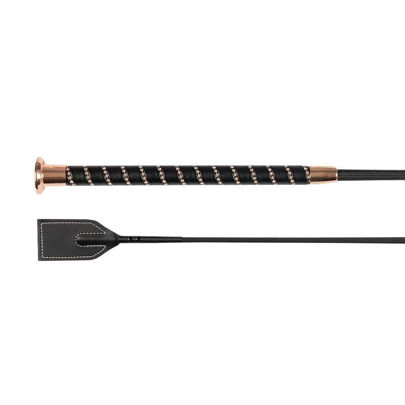 De Horka springzweep Diamant zwart/rosegoud is een chique zweep afgewerkt met diamantjes verwerkt in het handvat. De zweep is met nylon omwonden en is verkrijgbaar in de lente van 65 cm.