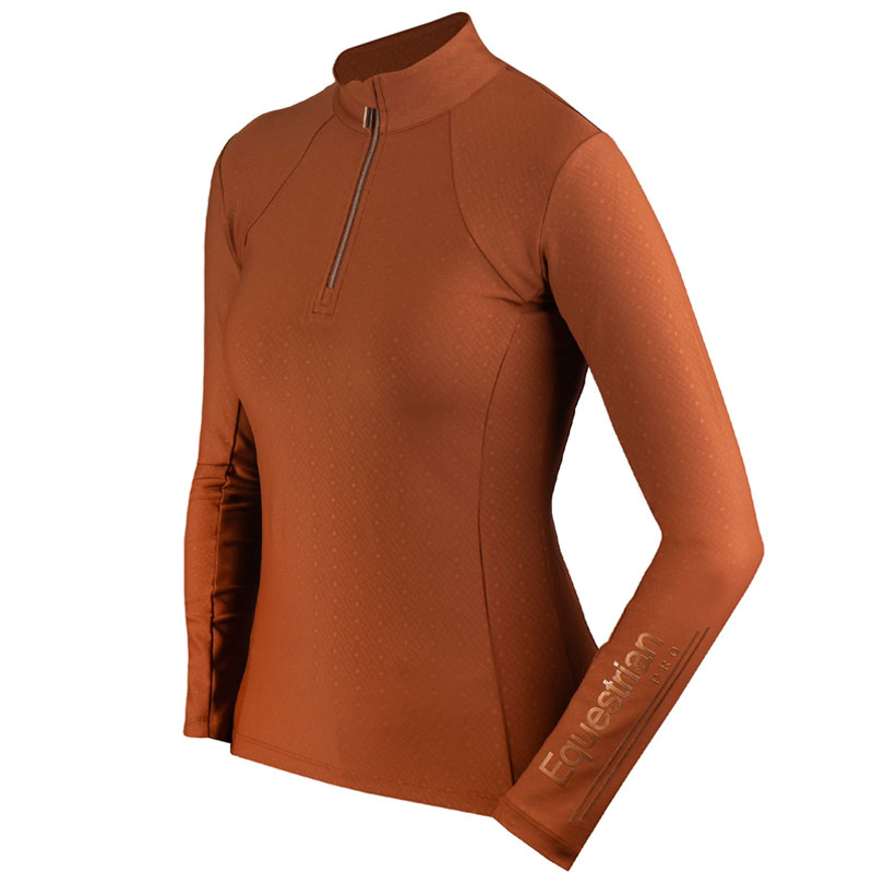 Het Horka Trainingsshirt Luxury EP Ginger/rosegoud is een klassiek, mooi vormgegeven shirt met lange mouwen uit een hoogwaardige comfortabele stretchstof. Het materiaal van het shirt is ademend en sneldrogend. Het shirt beschikt over een halve rits aan de voorkant en een kleine opstaande kraag.