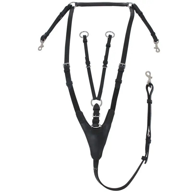 Lederen voortuig van het merk Horka voorzien van elastische gedeeltes en afneembare martingaal- vork. Het voortuig is volledig verstelbaar in maat.