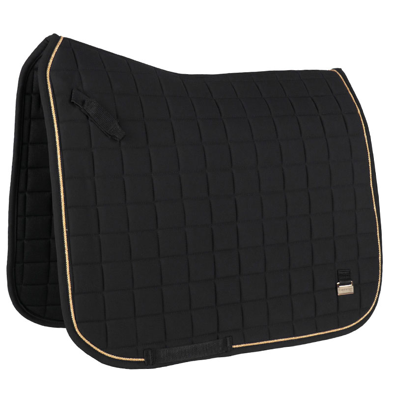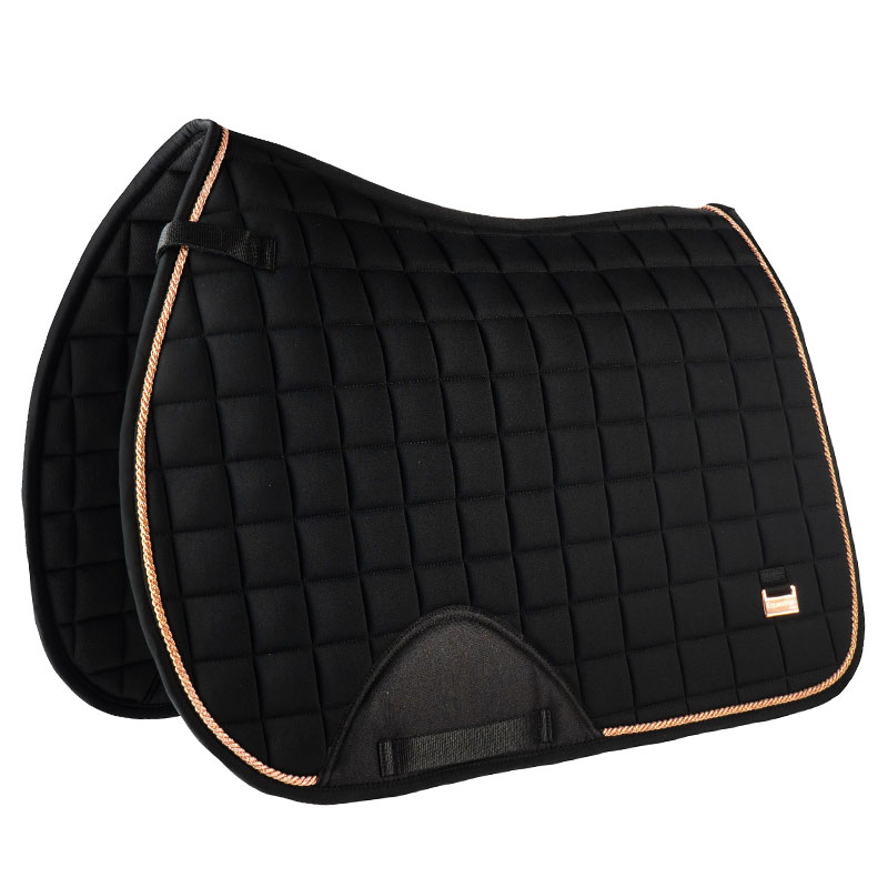 Het Horka Zadeldek Deluxe zwart/rosegoud heeft een anatomische pasvorm en is voorzien van een Quick Dry voering wat zorg draagt voor een optimaal comfort in combinatie met een technisch materiaal aan de buitenzijde. Het dekje is afgewerkt met koordpiping en metalen “Equestrian Pro” badge aan de linker zijde.