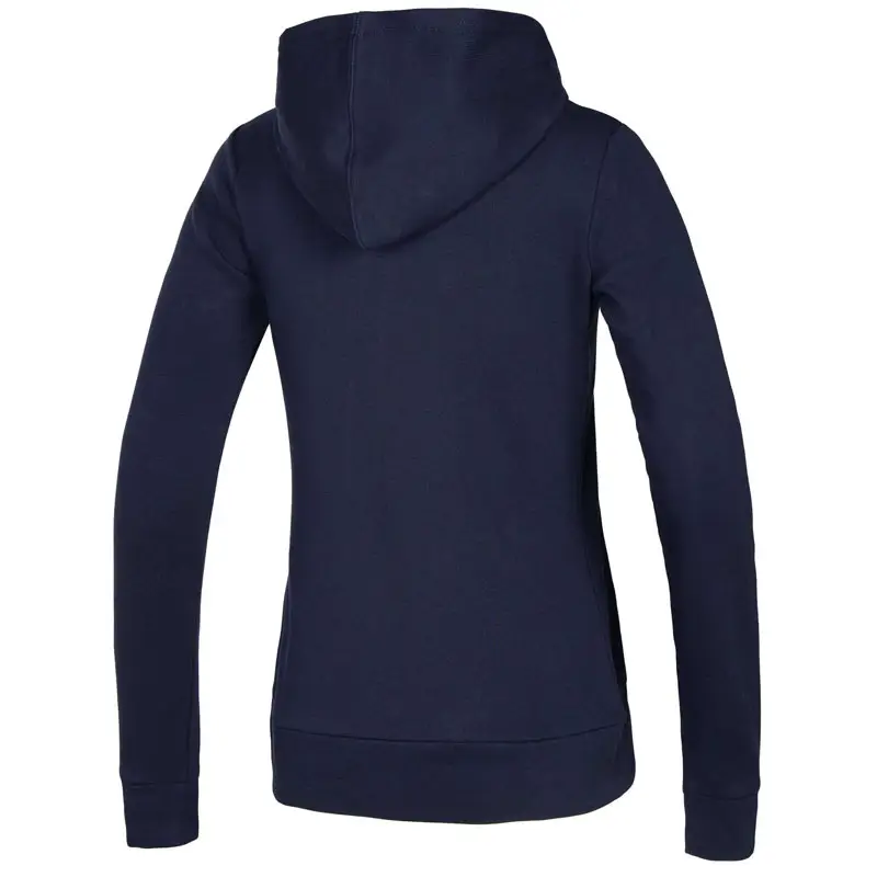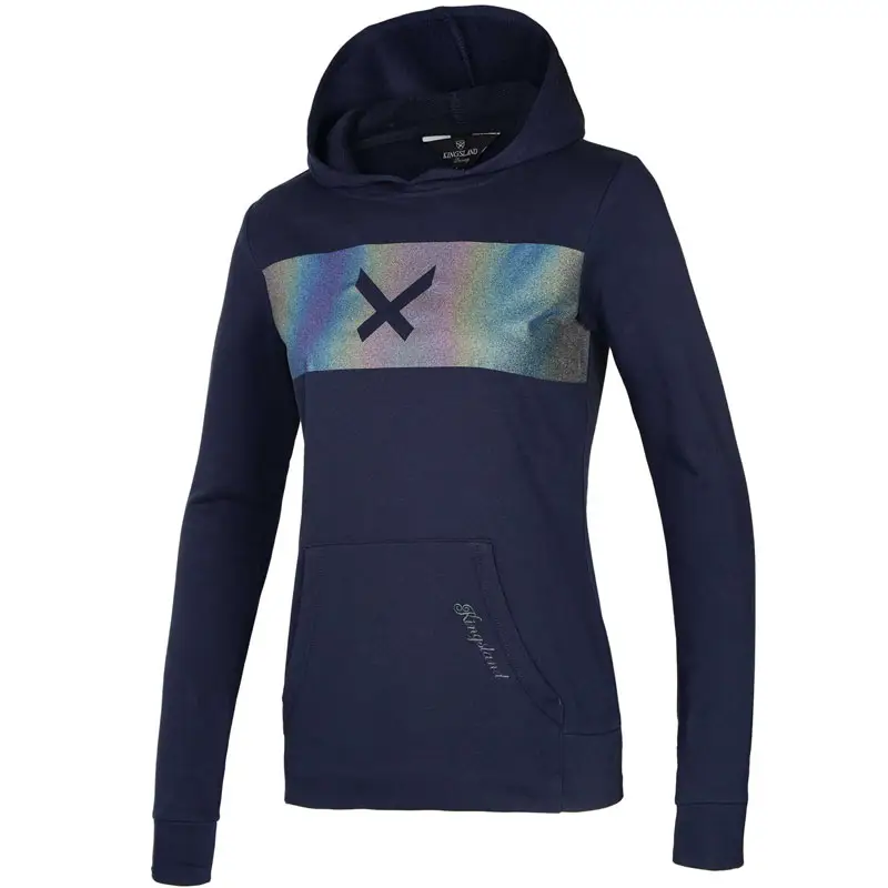 Dames Kingsland hoodie Toshie navy gemaakt uit zacht materiaal met een grote Fancy print op de voorzijde. De hoodie is voorzien van capuchon en kangoeroezakken op de voorzijde met Kingsland logo.