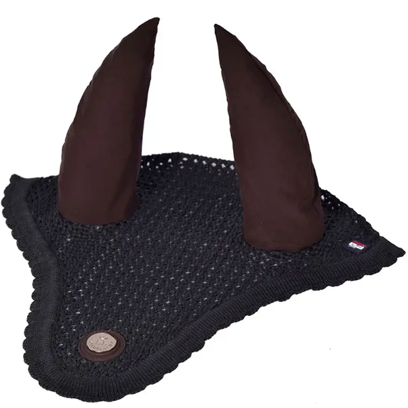 Gehaakt katoenen oornetje met elastische lycra oren uit de Kingsland collectie. Het oornetje is afgewerkt met metalen KL badge in het midden en rubber badge langs het linker oor.
