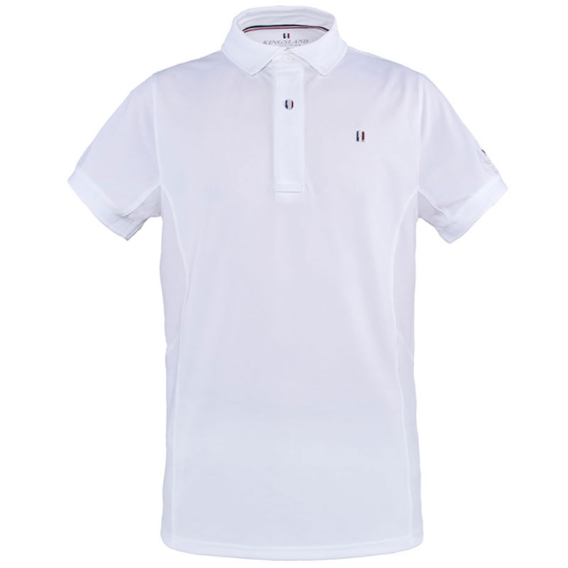 Heren wedstrijdshirt van het merk Kingsland vervaardigd uit een technische ademende en sneldrogende stof. Het shirt is voorzien van mesh gedeelte onder de armen voor een optimale ventilatie, knoopsluiting en stropdas lus. Het shirt is afgewerkt met geborduurd logo op de borst en op de linker arm.