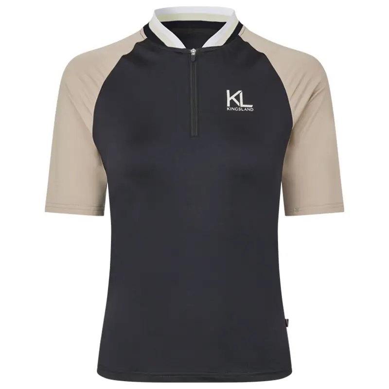 Kingsland Training Top KLNisha zwart is vervaardigd uit een technische stof en is voorzien van een opstaand boordje met ritssluiting en korte mouwen. Het shirt is afgewerkt in contrast kleur met KL logo op de borst en Kingsland tekst verticaal bedrukt over de rug.