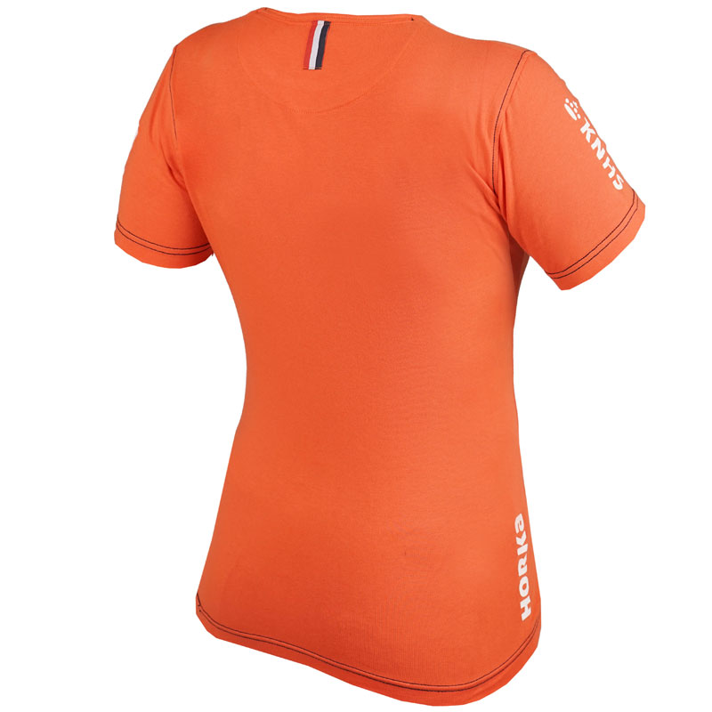Katoenen shirt voor kinderen uit de KNHS collectie gemaakt bij Horka. Het shirt heeft een ronde hals, korte mouwen en is afgewerkt met Horka logo op de linker mouw, KNHS logo op de rechter mouw en Horka print op de achterzijde.