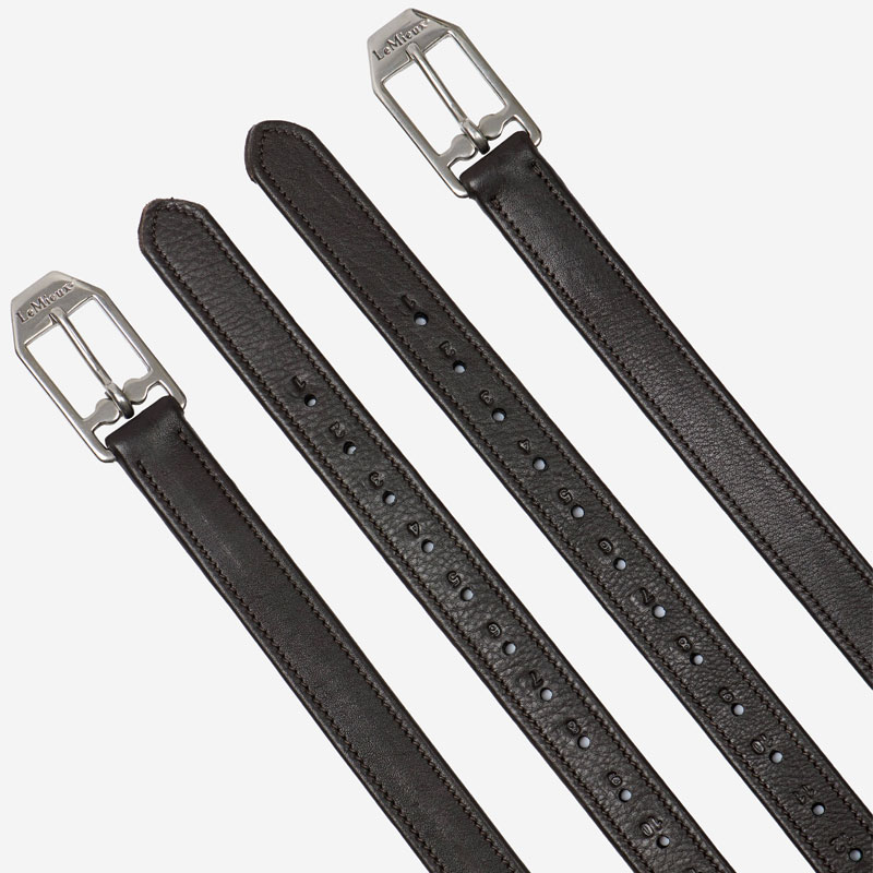 LeMieux Arika Beugelriemen Bruin. Stijgbeugelriemen gemaakt uit geolied soepel leer met roestvrijstalen gespen. De beugelriemen zijn met nylon inlage versterkt waardoor uitrekken en oneffenheden worden voorkomen.