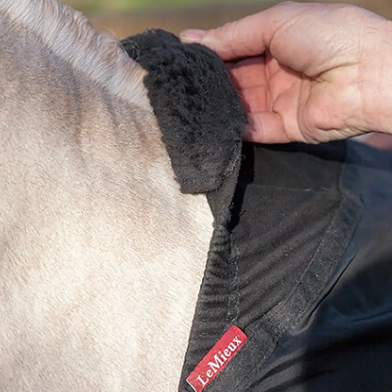 Elastische borstbeschermer van het merk Lemieux vervaardigd uit een polyester in combinatie met 4-way stretch. Door de combinatie van de materialen heeft deze borstbeschermer een optimale pasvorm. De beschermer is voorzien van elastische banden met sterke klittenbandsluiting en 100% australische merino lamsvacht op de schoft.