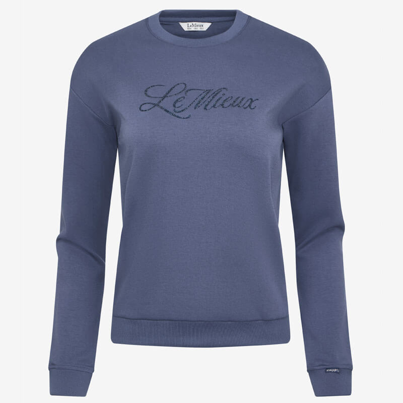 LeMieux Crew Sweat Christina Shadow. Dames trui vervaardigd uit soepel en comfortabel aanvoelende jersey stof. De trui is voorzien van ronde hals en is afgewerkt met een glinsterende print uit crystal steentjes op de borst.