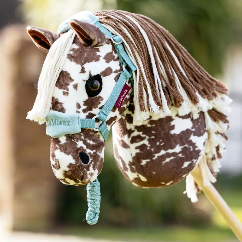 LeMieux Hobby Horse Halsterset Vogue Lagoon. Zacht gevoerd halster, verstelbaar in maat voor jouw Hobby Horse stokpaard. Het halster wordt geleverd compleet met matchend halstertouw.