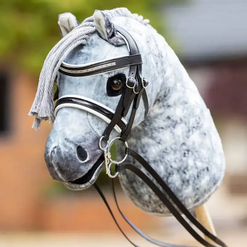 Het LeMieux Hobby Horse Stang en Trens Hoofdstel is een hoogwaardig kwaliteit hoofdstel met een lak neusriem en een frontriem afgewerkt met strass steentjes. Het miniatuur hoofdstel is geschikt voor de LeMieux Hobby Horses.