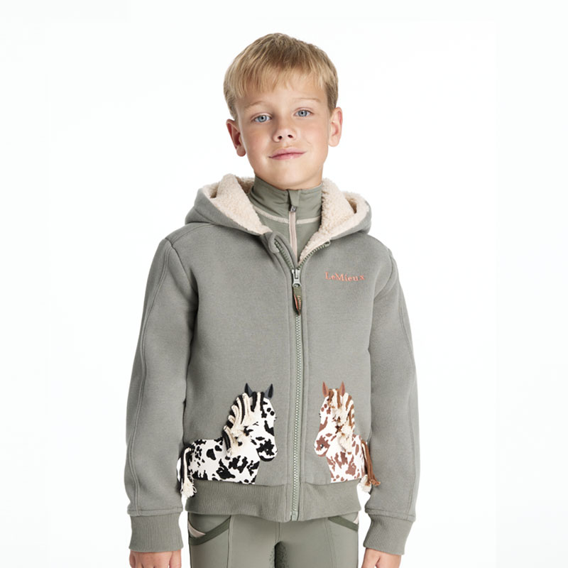 LeMieux Hoodie Charlie Kids Rosemary. Comfortabele met teddy fleece gevoerde kinder hoodie voorzien van capuchon, ritssluiting, kangaroekzakken en een schitterende afwerking met een geborduurde applicatie en speelvolle details.