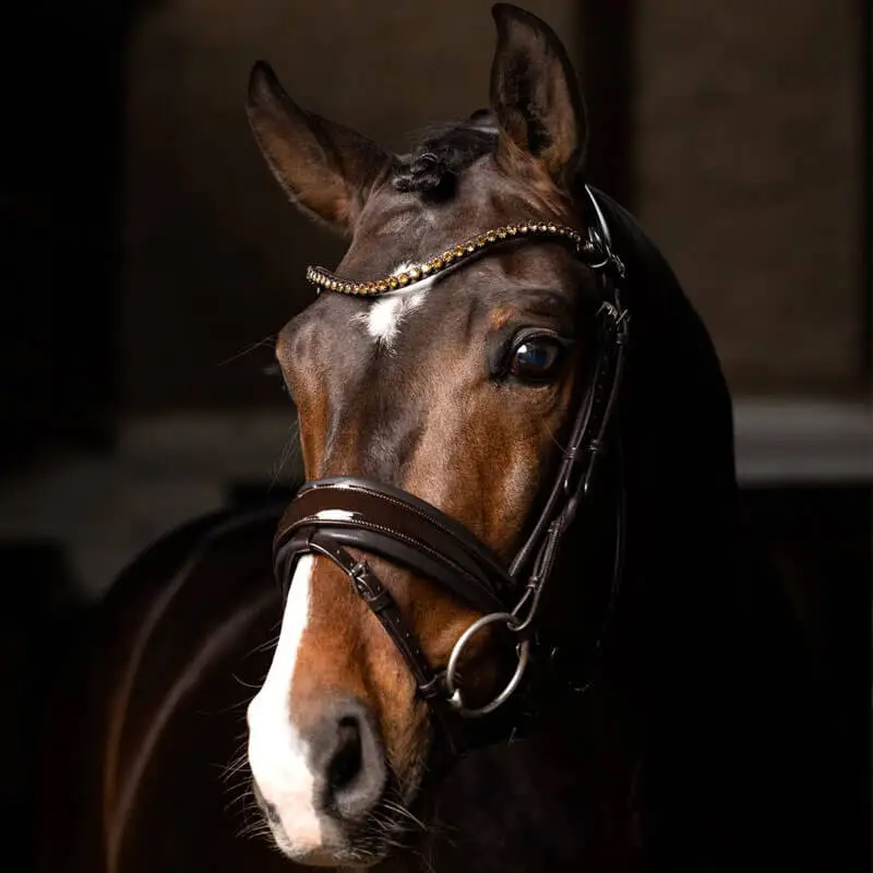 * aansnoerneusriem uitgevoerd met bruin lak
