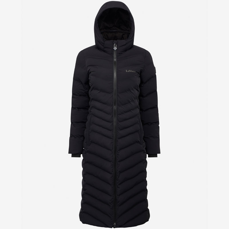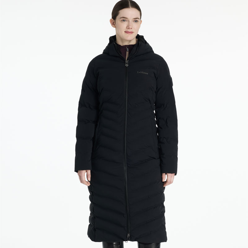 LeMieux Lange Jas HayLey Zwart. Modieuze waterafstotende en ademende dames winterjas met een heerljk warme voering. De jas is voorzien van capuchon, tweeweg ritssluiting, zakken met ritssluitingen, binnenzak met ritssluiting en heeft een split aan de achterzijde voor optimale bewegingsvrijheid.