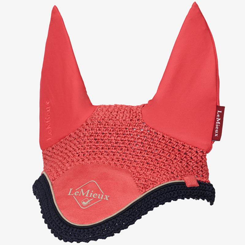 Gehaakt LeMieux oornetje Classic Cranberry voorzien van elastische lycra oren. Het oornetje is afgewerkt met decoratief koord en geborduurd LeMieux logo.