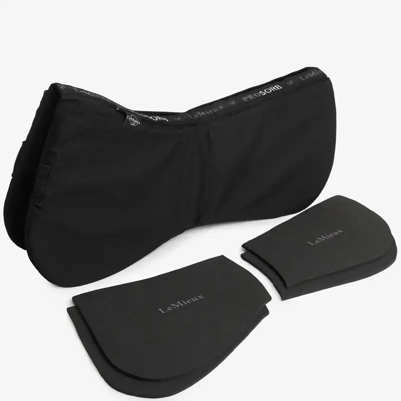 De LeMieux ProSorb Half Pad draagt zorg voor een optimale drukverdeling op de rug van het paard. De ruglijn van de onderlegger is anatomisch gevormd in combinatie met 2 vakken met inzetstukken gemaakt uit schuim, waardoor de ligging van het zadel gecorrigeerd kan worden.