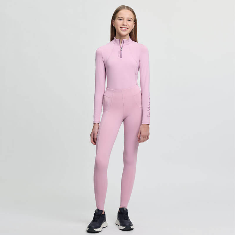 LeMieux Rijlegging Orla Junior Fondant. Gemakkelijk aan te rekken kinder paardrijlegging gemaakt uit een naadloze, elastische en ondersteunende stof met elastische tailleband. De legging is voorzien van een full Grip siliconen zitvlak voor extra stabiliteit in het zadel en heeft een zak op beide benen geschikt voor onder andere de mobiele telefoon.